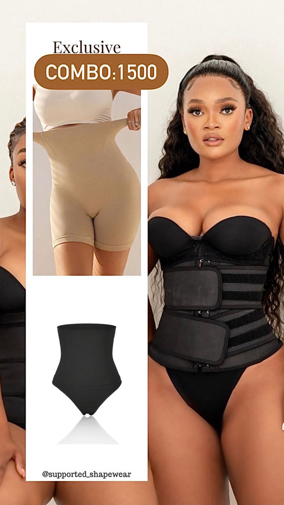 Combo includes: Full tummy tuck panties ,short tights with wires and our famous double belt waist trainer.